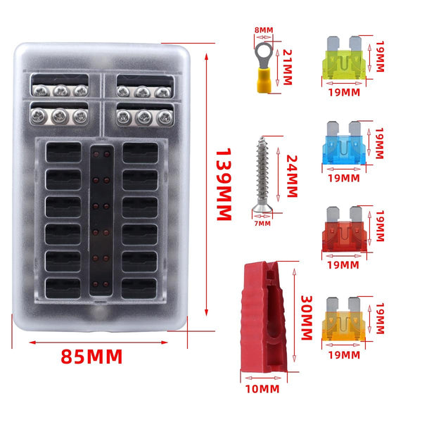 CP-4039 12 Way Fuse Block with 24pcs Fuses and 12pcs Terminals