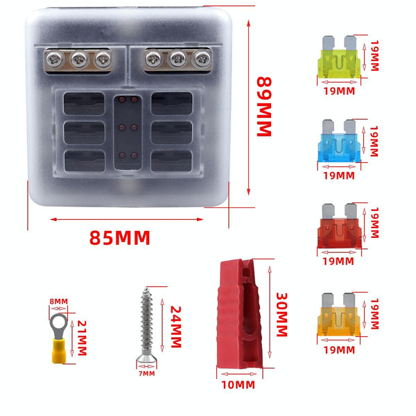 CP-4040 6 Way Fuse Block with 12pcs Fuses and 12pcs Terminals