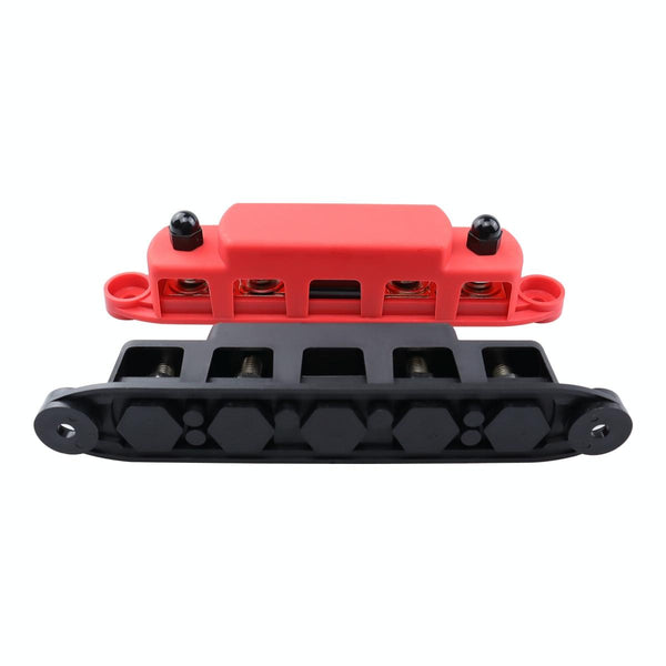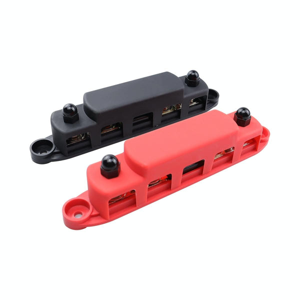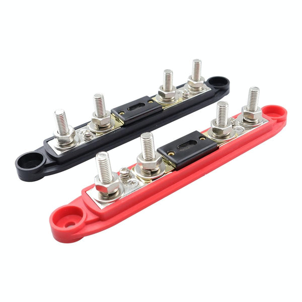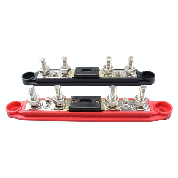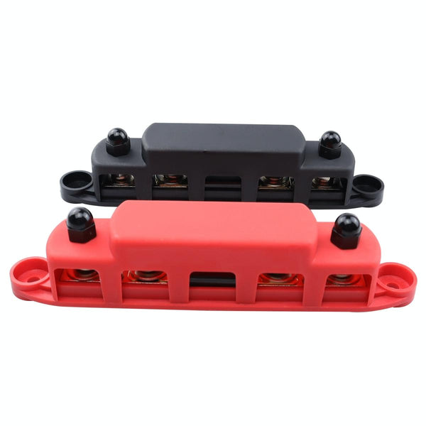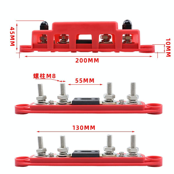 CP-4125 1 Pair RV Yacht M8 Single Row 4-way Power Distribution Block Busbar with Cover with 300A Fuse(Black + Red)