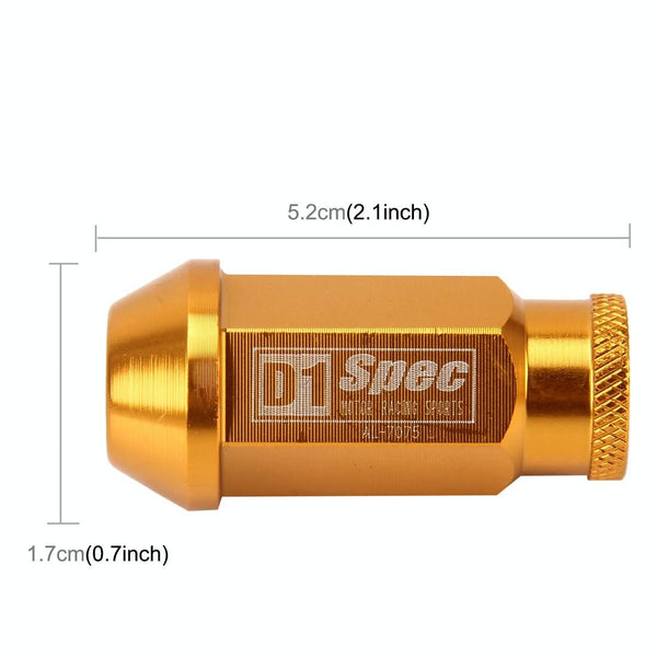 D1 Spec P1.5 M12x1.25 Racing Wheel Nut, Length: 50mm(Gold)
