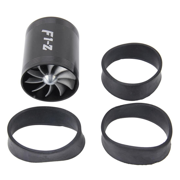 F1-Z Car Stainless Universal Supercharger Dual Double Turbine Air Intake Fuel Saver Turbo Turboing Charger Fan Set kit(Black)