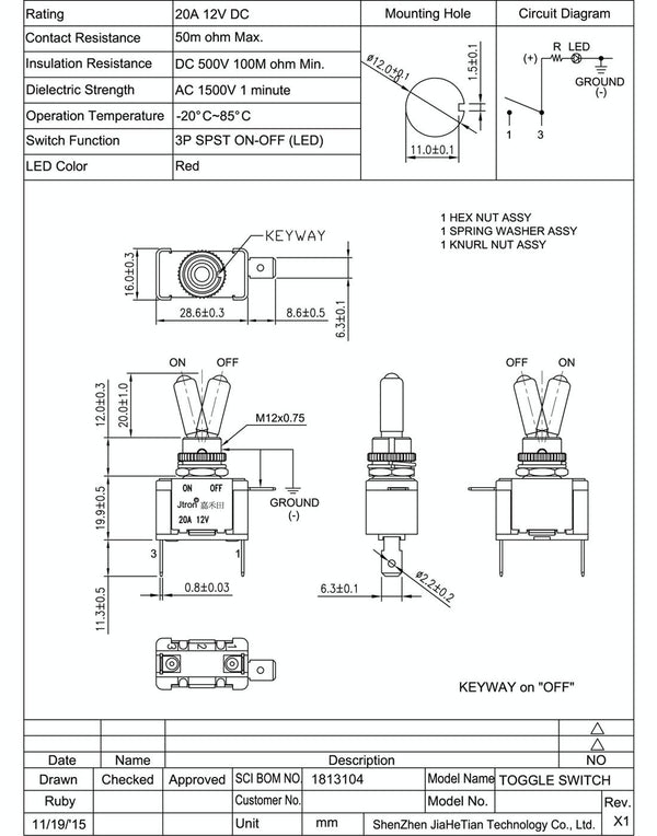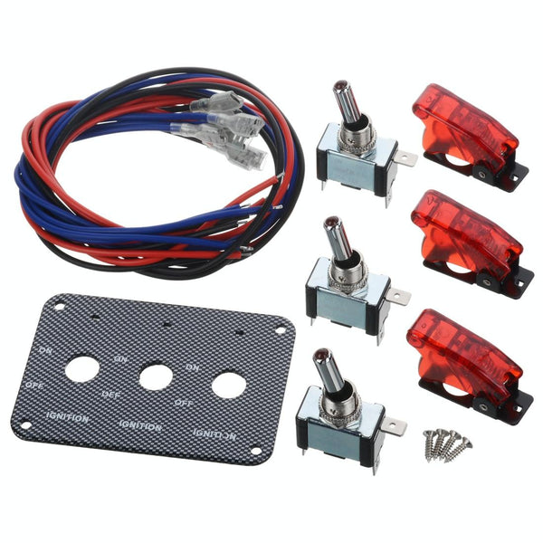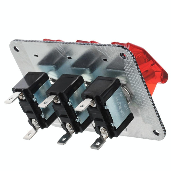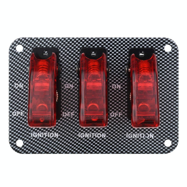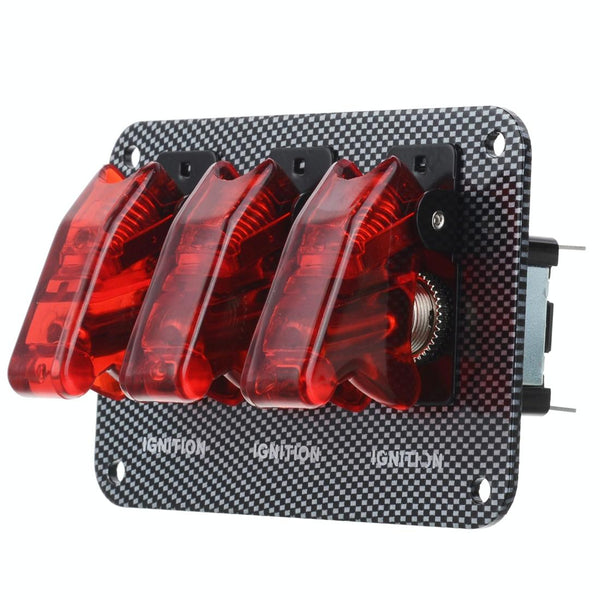 Jtron DV 12V Carbon Fiber Surface Panel Car Toggle Switch with Red LED Indicator(Red)