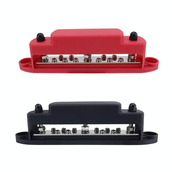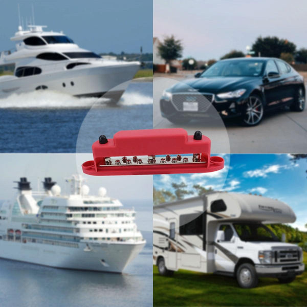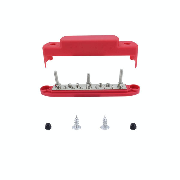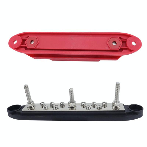 M6 3-post 10-way RV Yacht Short-circuit Proof Base DC Busbar, Color: Red