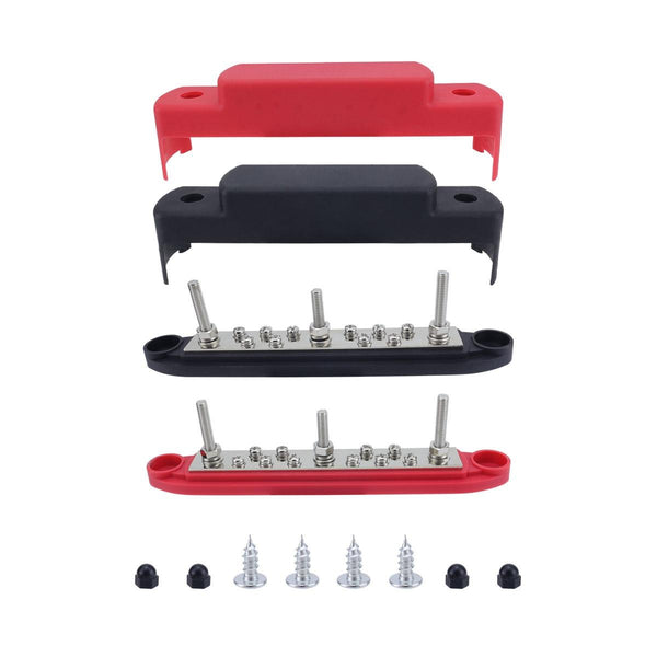 M6 3-post 10-way RV Yacht Short-circuit Proof Base DC Busbar, Color: Red+Black 1pair