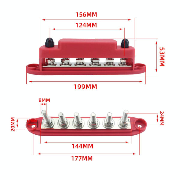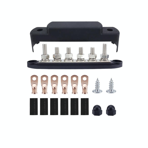 M8 Nylon Base RV Yacht Waterproof Dustproof Cover 6-post Bus Bar, Color: Black With Terminal Heat Shrink Tube