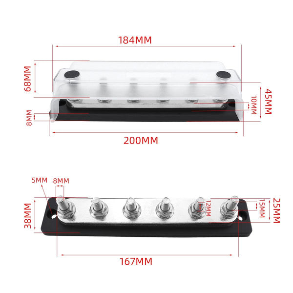 M8 Stud RV Yacht 6-way Nylon Flame Retardant Base DC Busbar