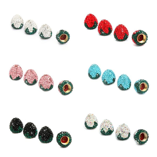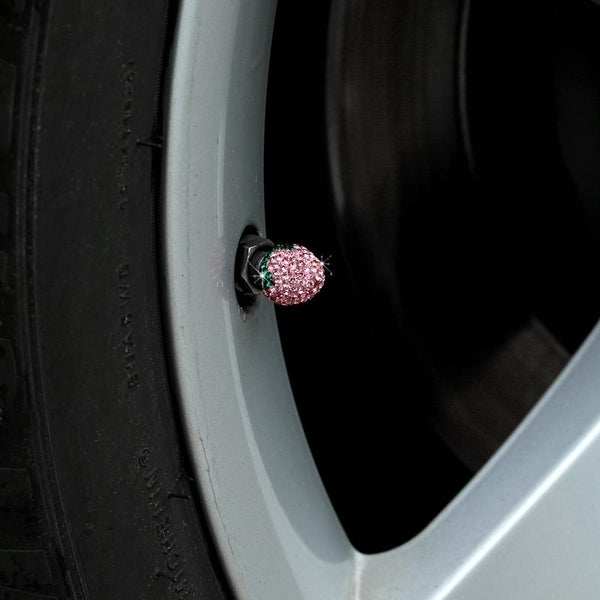Metal Car Universal Diamond-studded Strawberry Valve Cap Copper Valve Cover(Pink)