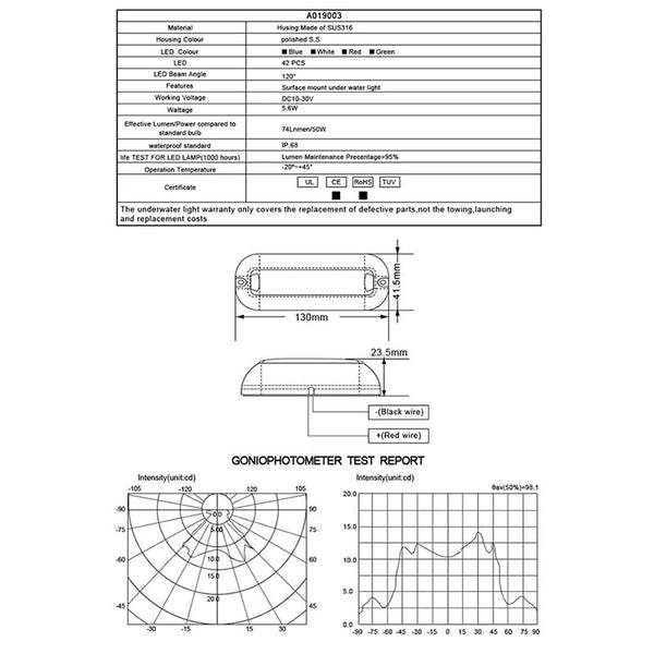 2. Made of stainless steel, resistant to vibration and shock, recommended for use above the waterline, easy to install Surface mount, with small holes for wiring.