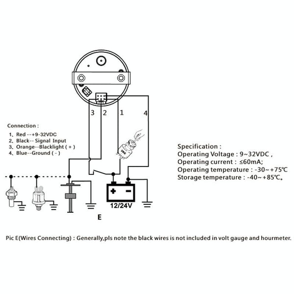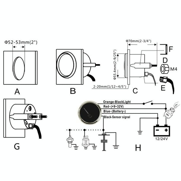 8. Wiring: red wire to the positive power supply, blue wire to the negative power supply, black signal wire to the sensor, orange wire backlight wire to the positive power supply