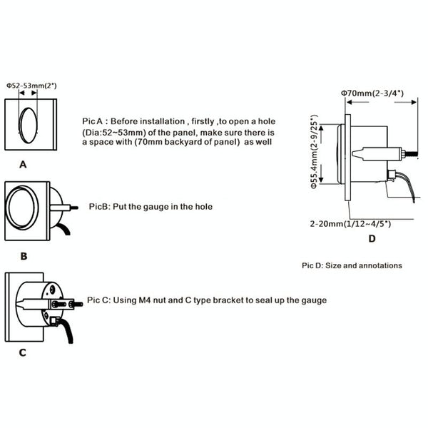 10. Installation size: about 52mm