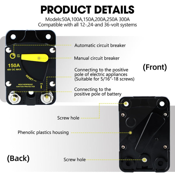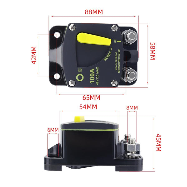 RV Yacht Manual Reset Ignition Protection Fuse Switch With Terminal Accessories, Current: 100A