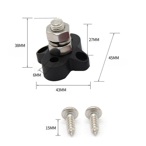 Single Heavy-Duty Terminal Studs BlackM10 Bus Bar for Car / RV / Boat