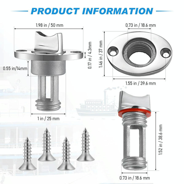 Stainless Steel Water Plug For Kayak Stern Drain, Set: 2pcs