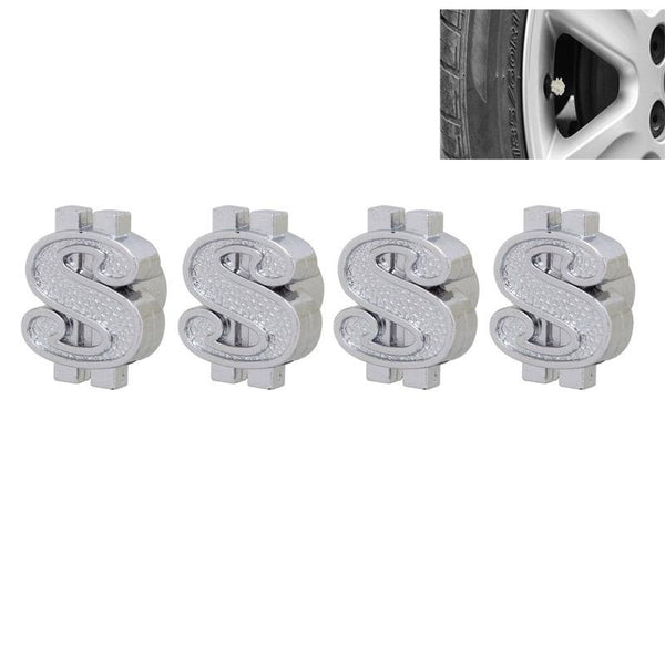 Universal 8mm Dollar Style Plastic Car Tire Valve Caps, Pack of 4(Silver)
