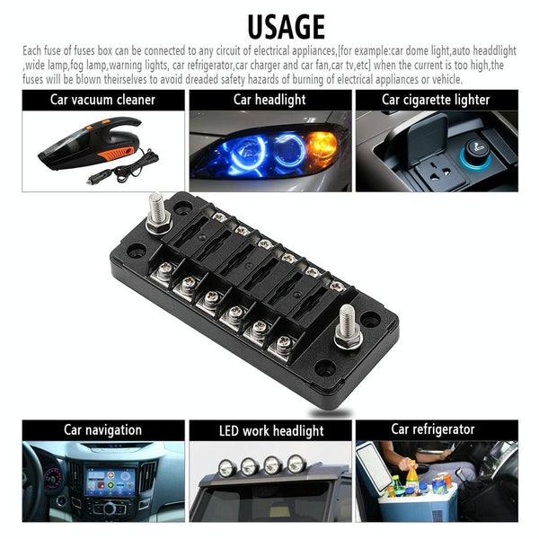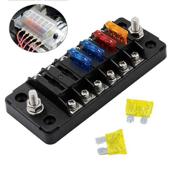 ZH-979A1 FB1903 1 In 1 Out 6 Ways No Distinction Positive Negative Fuse Box with 12 Fuses for Auto Car Truck Boat