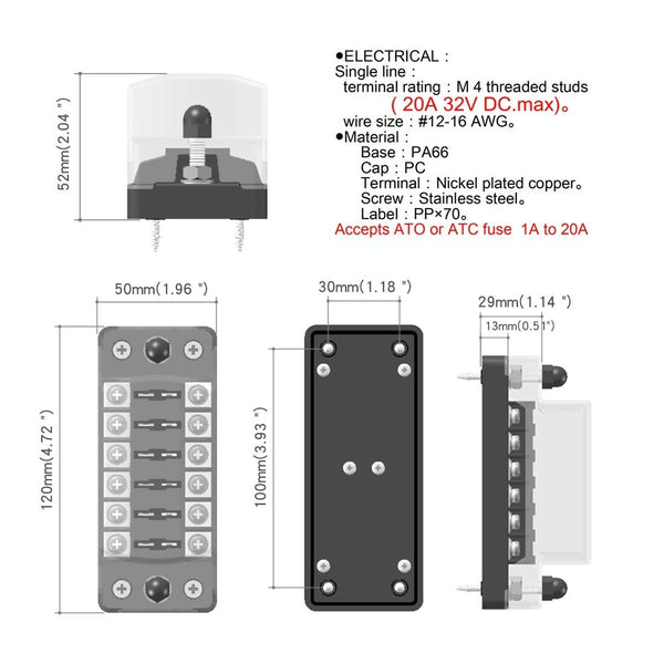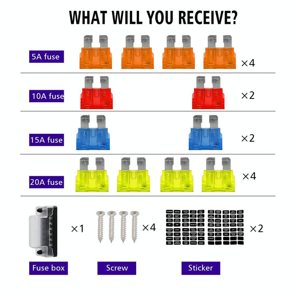 7. Fuse Type: Accepts ATO or ATC fuses from 1A to 20A