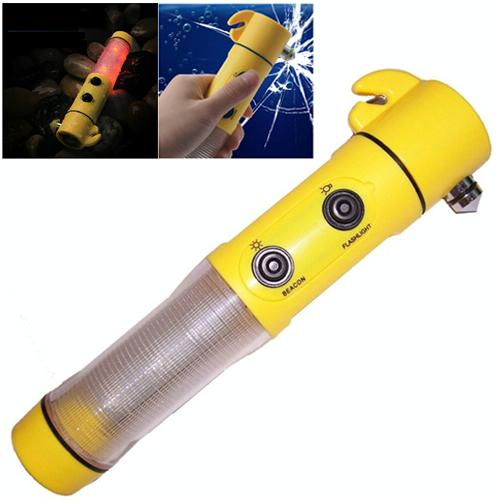 4 in 1 Multi Function Flashlight Alarm Emergency Hammer LED Flash Light For Auto-used(Yellow)