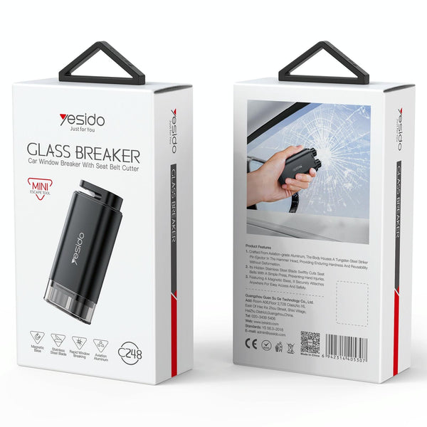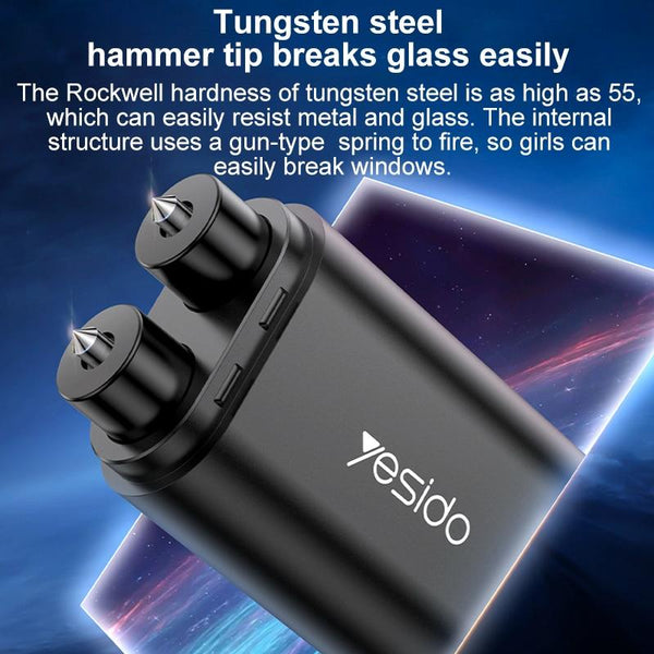 Yesido C248 Multifunctional Seat Belt Cutting Emergency Vehicle Safety Hammer(Black)