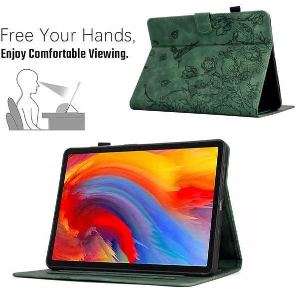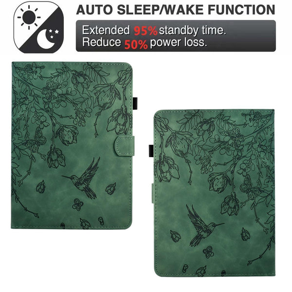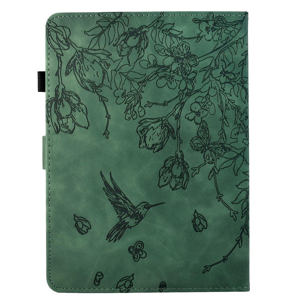 For Amazon Kindle Paperwhite 12th Gen 2024 Flowers and Bird Embossed Smart Leather Tablet Case(Green)