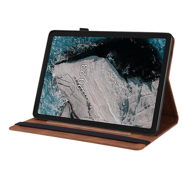 For Nokia T20 Butterfly Flower Embossed Leather Tablet Case(Brown)