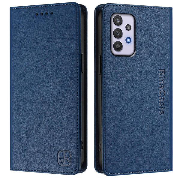 For Samsung Galaxy A32 4G RC01 Dual-Folded Magnetic Suction RFID Leather Phone Case(Dark Blue)