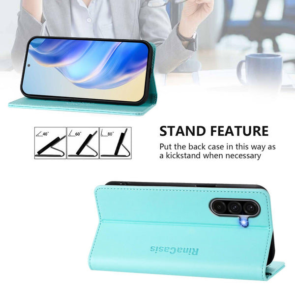 For Samsung Galaxy A36 5G RC01 Dual-Folded Magnetic Suction RFID Leather Phone Case(Mint Green)