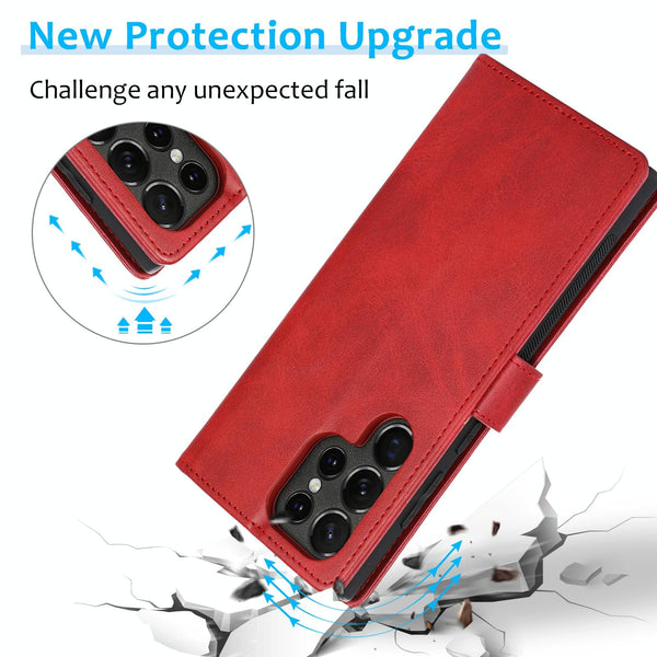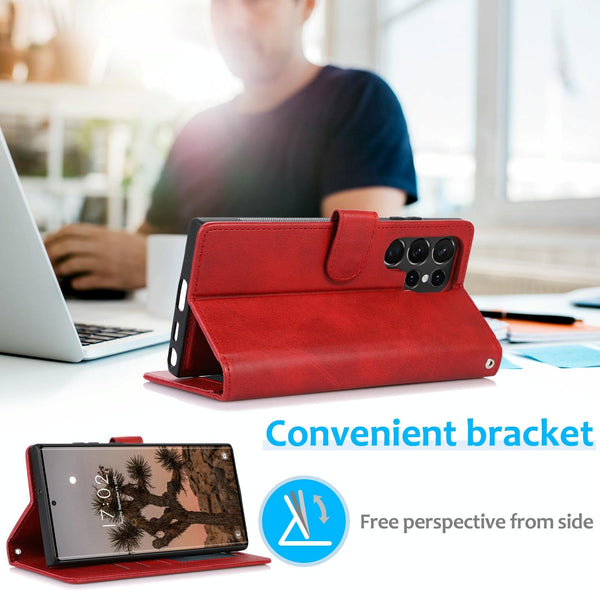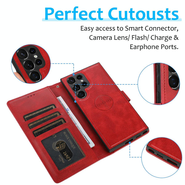 For Samsung Galaxy S22 Ultra 5G Calf Texture 2 in 1 Detachable Magnetic Back Cover Leather Case(Red)
