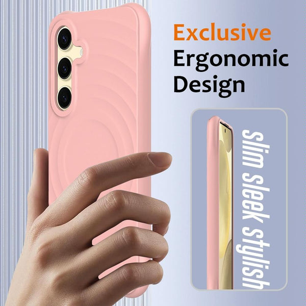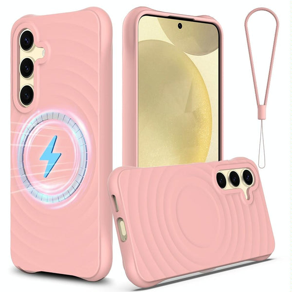 For Samsung Galaxy S24 5G Wave Texture MagSafe Magnetic Liquid Silicone Phone Case(Pink)
