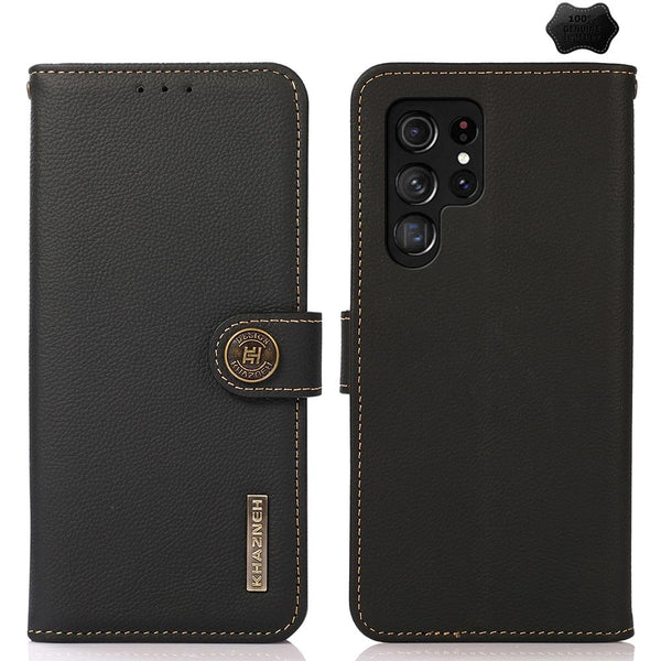 For Samsung Galaxy S25 Ultra 5G KHAZNEH Custer Genuine Leather RFID Phone Case(Black)