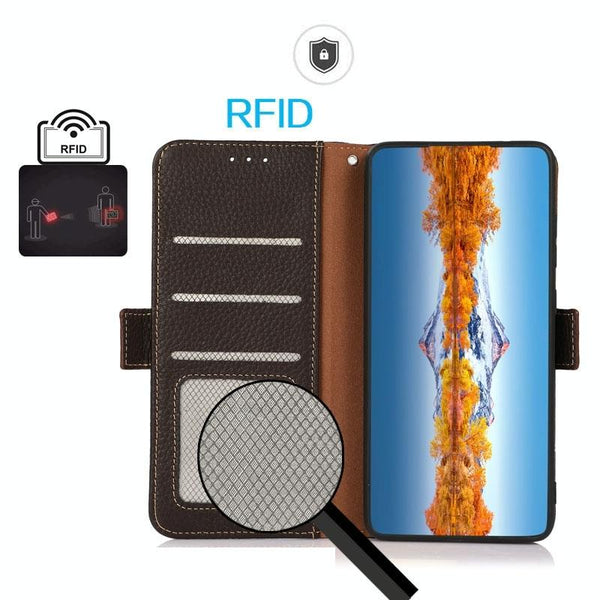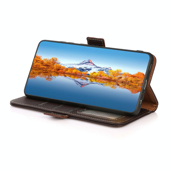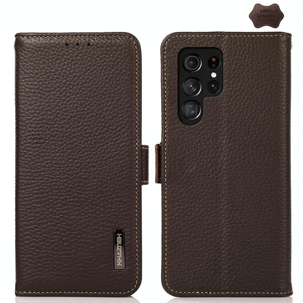 For Samsung Galaxy S25 Ultra 5G KHAZNEH Side-Magnetic Litchi Genuine Leather RFID Phone Case(Brown)