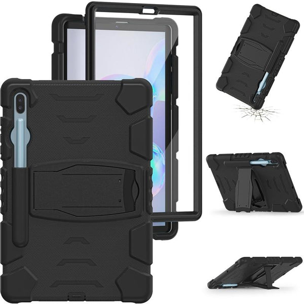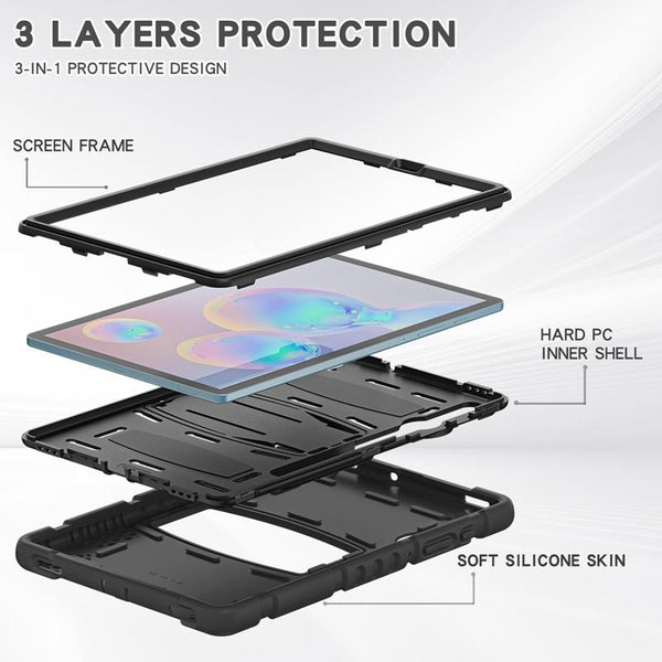 For Samsung Galaxy Tab S6 T860 3-Layer ProtectionScreen Frame + PC + Silicone Shockproof Combination Case with Holder(Black+Black)