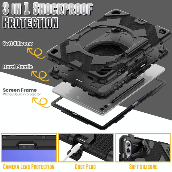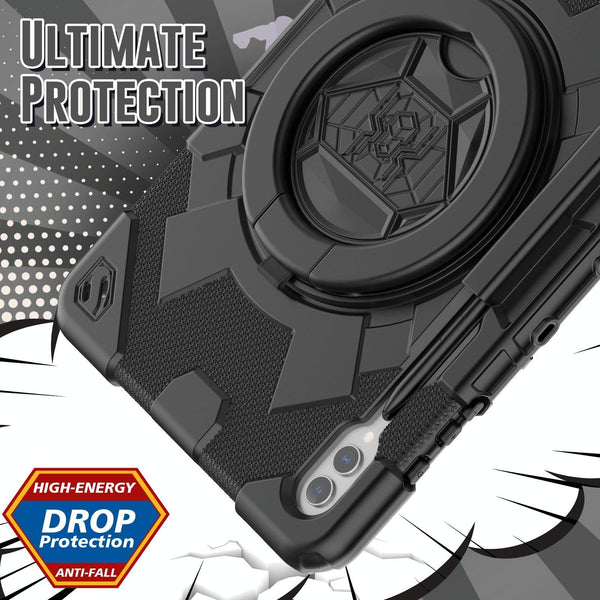 For Samsung Galaxy Tab S9+ / S10+ Spider Rotation Handle Silicone Hybrid PC Tablet Case(Black)