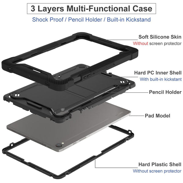 For Samsung Galaxy Tab S9 Shockproof Silicone Hybrid PC Tablet Case with Holder(Black)