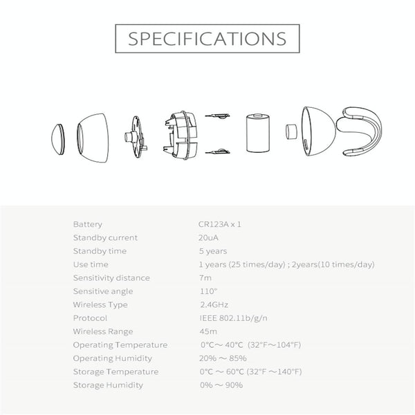 - Two-year battery life (1 x CR123A battery)