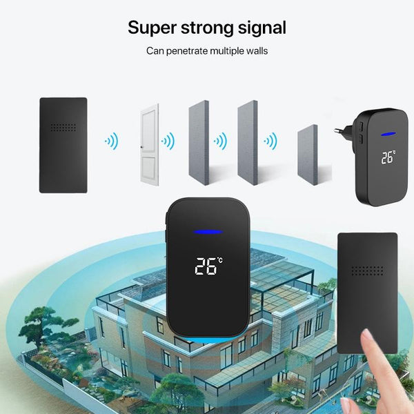 Wireless Doorbell with Temperature Display, 150m Range, UK Plug - Black