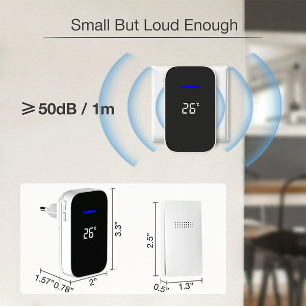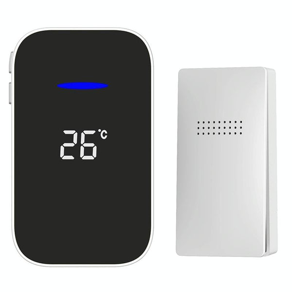 This versatile doorbell is ideal for various uses, from a standard front door chime to a pager for elderly relatives, ensuring their safety and wellbeing. The receiver displays the current ambient temperature, providing convenient at-a-glance information.
