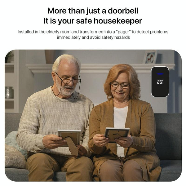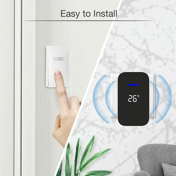 Wireless Doorbell with Temperature Display, 150m Range, EU Plug (White)