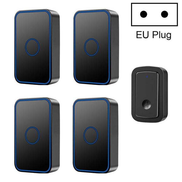 Wireless Doorbell Kit, 4 Receivers, 300m Range, EU Plug, Black