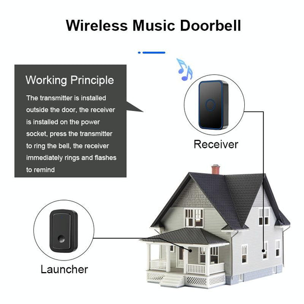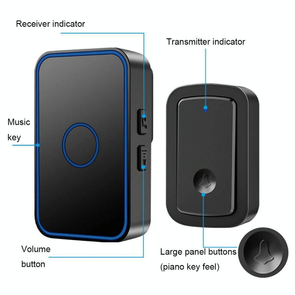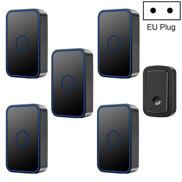 Wireless Doorbell Kit, 5 Receivers, 300m Range, EU Plug, Black