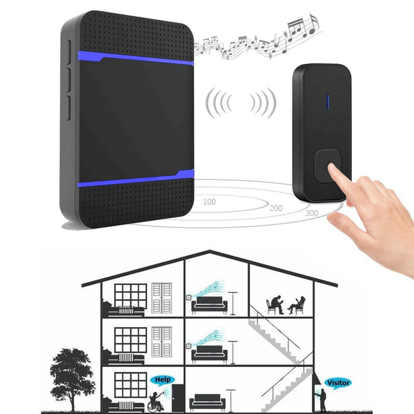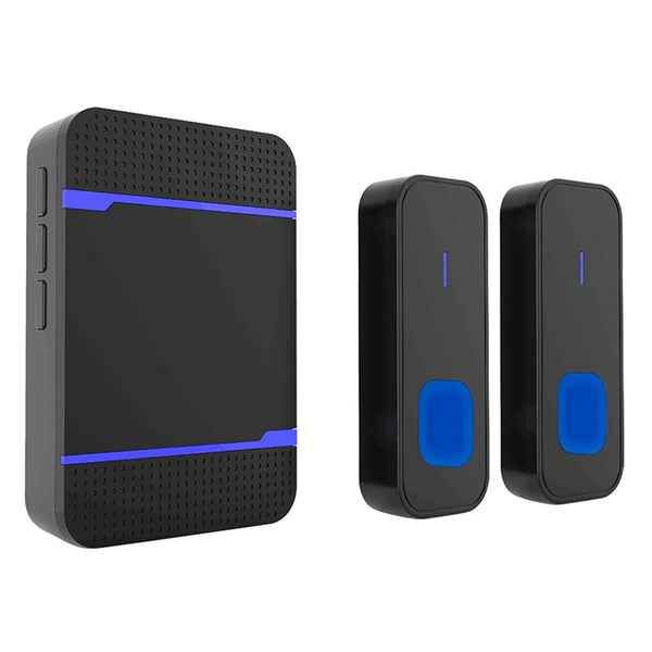Wireless Doorbell Kit, 2 Transmitters, 300m Range, IP55 Waterproof, US Plug (Black)