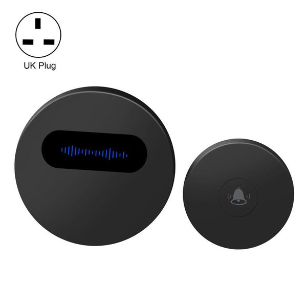 Self-Powered Wireless Doorbell, 180m Range, IP68 Waterproof, UK Plug, Black