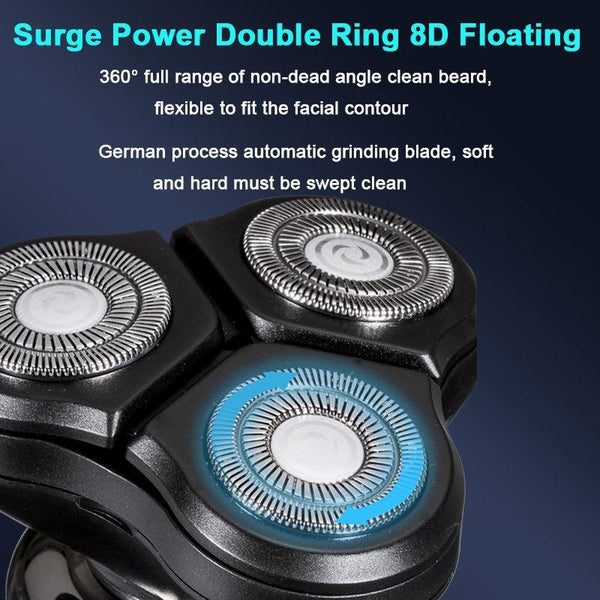 1. Floating three-head shaving, all-round fit and cleaner