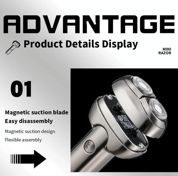 1. Rotating double-ring floating blade end, blade end self-sharpening technology, stainless steel build, wear-resistant and durable, not easy to rust, agile fit, efficient capture, stable and accurate shaving