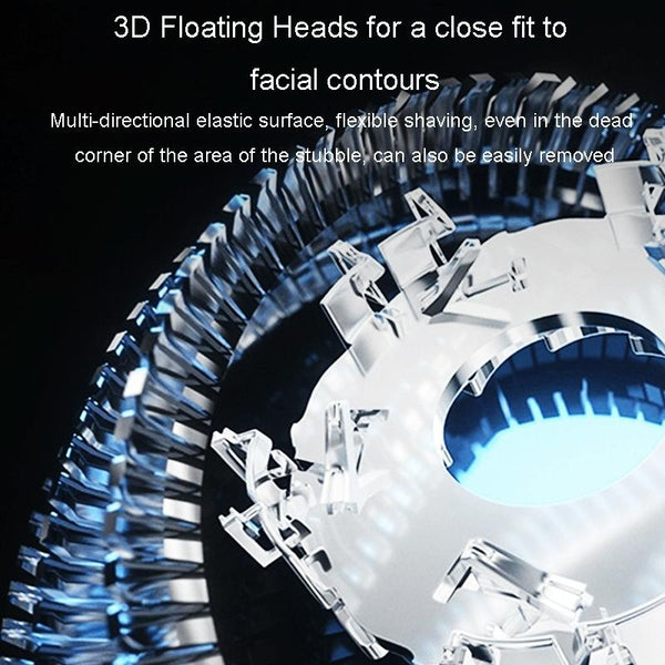 2. 3D floating blade end, dynamic fit facial contours, 360-degree floating surface shaving, multi-directional elastic surface, flexible shaving, even if the dead corner parts of the scruff, can also be easily eliminated