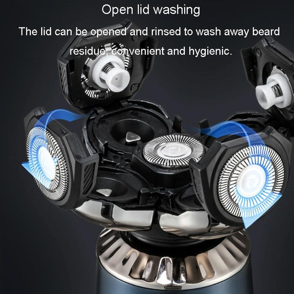 1. rotary 5-blade razor, selected steel to create, wear-resistant and durable, not easy to rust, dynamic fit, stable and accurate shaving, net shaving without trace