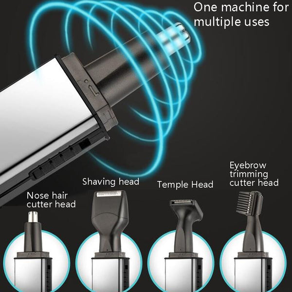 7. Packing list: host x1, shaving head x1, eyebrow trimming head x1, sideburn head x1, charging cable x1, cleaning brush x1, manual x1