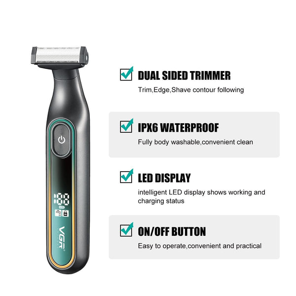 VGR V-360 5W USB Digital Display Electric T-shaped Shaver(Green)