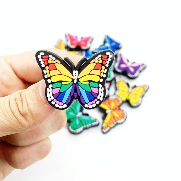 100pcs Butterfly Cartoon Shoe Flower Removable PVC Soft Rubber Cave Shoes Buckle(Purple)
