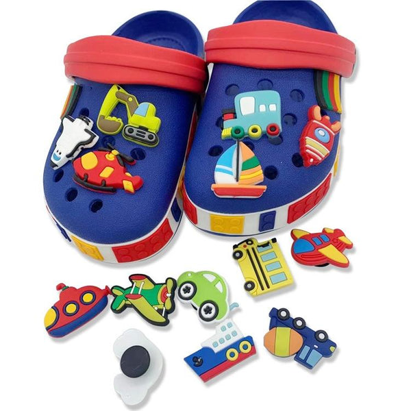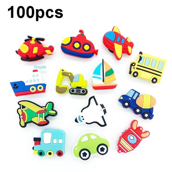 100pcs PVC Drip Cartoon Transportation Cave Shoes Buckle Hand Ring Decorative Accessories(Style Random Delivery)