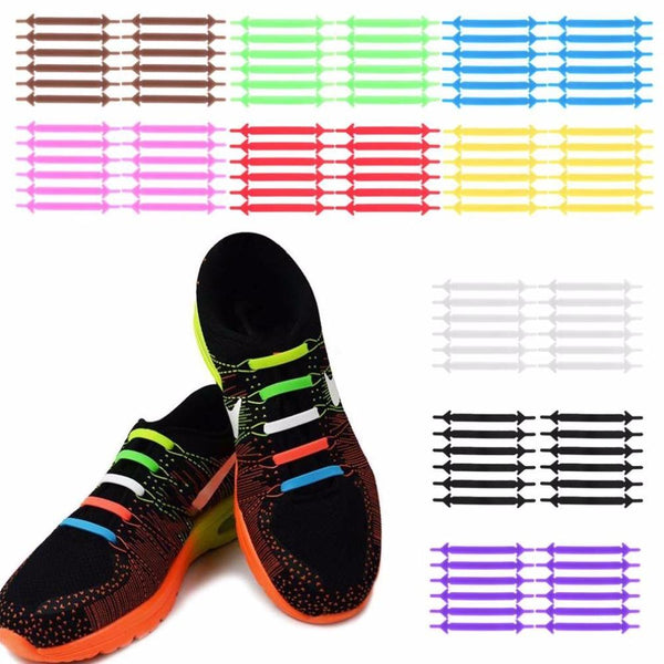 12 PCS / Set Creative Unisex Women Men Athletic Running No Tie Shoelaces Elastic Silicone Shoe Lace for All Sneakers(Black)